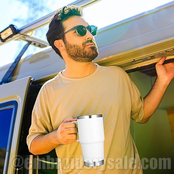 Stainless Steel Tumblers with Handle: Made of 304 18/8 stainless steel,it won't retain or transfer flavors with the electro polished inside and also sweat proof with colorful powder coating outside. 360-degree welded handle gives you a firm grip on your beverage
