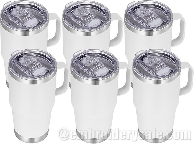 VEGOND 20 oz Tumbler Bulk with Handle Lid and Straw, Stainless Steel Insulated Travel Coffee Mug Set, Spill Proof Double Wall Metal Tumblers Cups, White 6 Pack